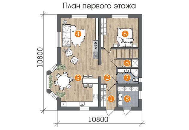 Два этажа грамотно спланированных и удобно размещённых помещений сделали этот внешне привлекательный дом идеальным для проживания большой дружной семьи.