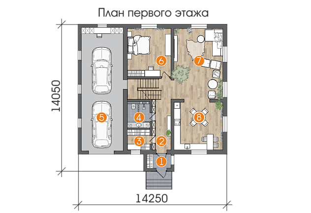 Просторный дом с двумя этажами для большой семьи. Четыре спальни, гостиная и большой гараж. Все для вашей комфортной жизни.